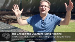 Scott Aaronson: So yeah so I did write this kind of crazy essay five or six years ago that was called “The Ghost in the Quantum Turing Machine“, where I tried to explore a position that seemed to me to be mysteriously under-explored! And all of the debates about ‘could a machine be conscious?’ and we want to be thoroughgoing materialists right? There’s no magical ghost that defies the laws of physics; the brains or physical systems that obey the laws physics